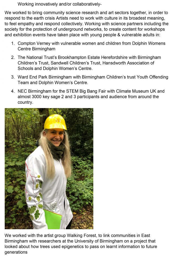 The project tells us we are nature and that nature is creative, we can all feel this through our imagination. That our artists working with our community, public, research, nature conservation, and sustainability partners will help us connect to and engage with many people in the project.