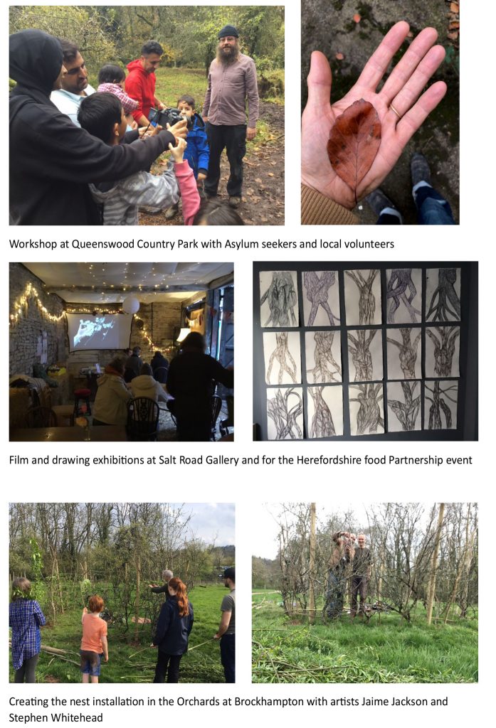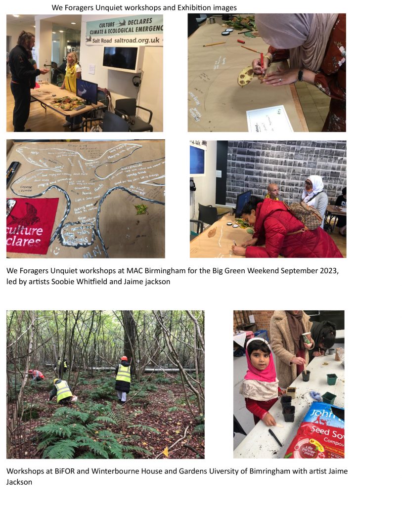 We Foragers Unquiet is a Salt Road Arts Council England funded commissioning program for 2023 delivered in partnership with the National Trust. Curated by Salt Road’s Dr Sally Payen for 11 artists creating new artwork, co-production workshops & exhibition exploring the devastating loss of foraging landscape; connecting & transporting people from socially deprived areas in Herefordshire & Birmingham with Brookhampton estate, a rural National Trust site on the Herefordshire / Worcestershire border.